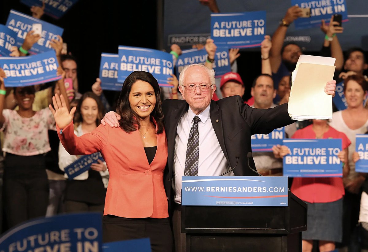 “Nossa atual Partido Democrata, infelizmente, não é o partido que é do povo, pelo povo e para o povo. É um partido que foi e continua a ser influenciado pelo establishment de política externa em Washington, representado por Hillary Clinton e outros, pela política externa, pelo complexo industrial militar e por outros interesses corporativos gananciosos.