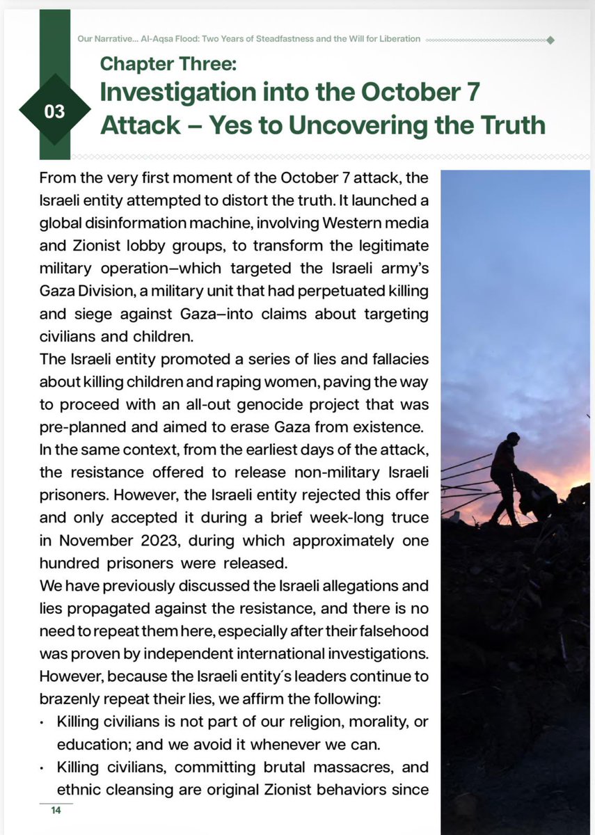 🟢 Hamas is publicly challenging Israel and its U.S. backers to allow an open, impartial international investigation into October 7—rejecting Israeli claims about civilian targeting, killing of children, and raping of women.