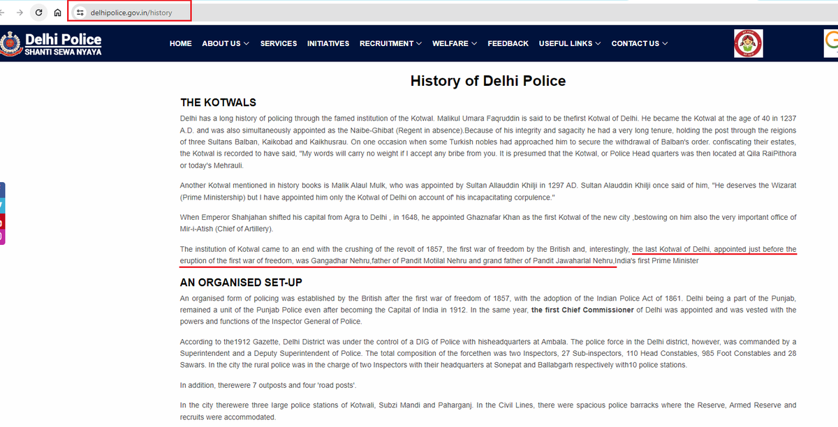 9. This debunks the claim that Gangadhar Nehru, the Grandfather of Jawaharlal Nehru, was appointed as a Kotwal of Delhi just before the Mutiny of 1857 and was the last Kotwal of Delhi.