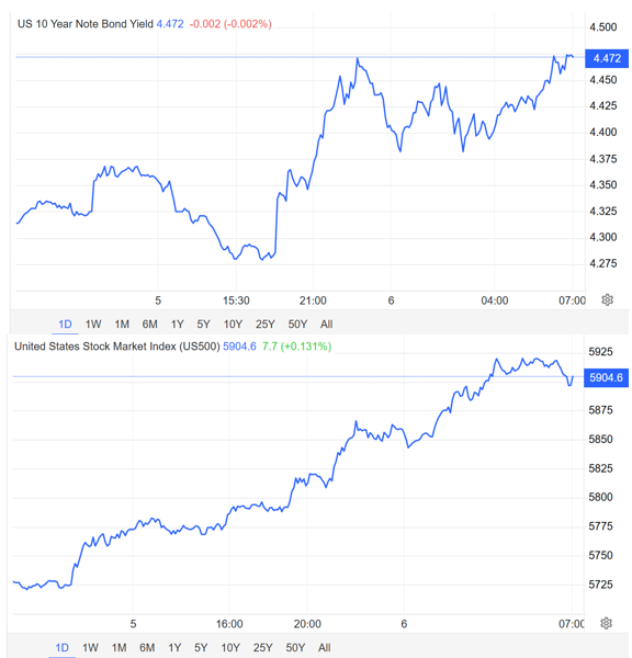 The results pretty much remove all the of uncertainty about the election outcome, which importantly largely eliminates the tail risk of a protracted conflict. An important driver of stocks pushing higher despite sharply higher yields.