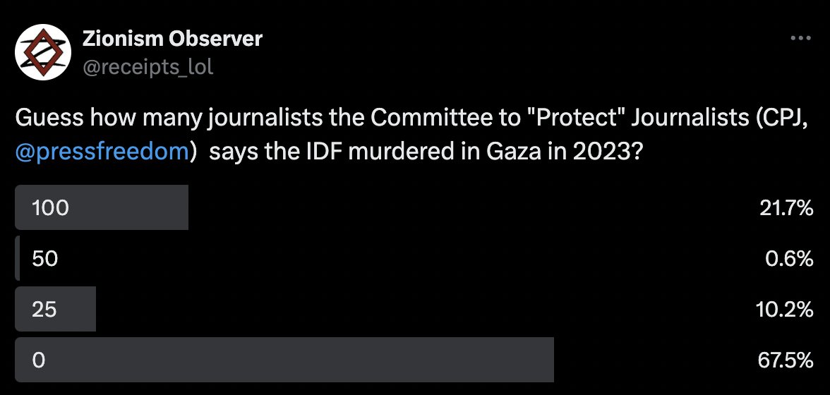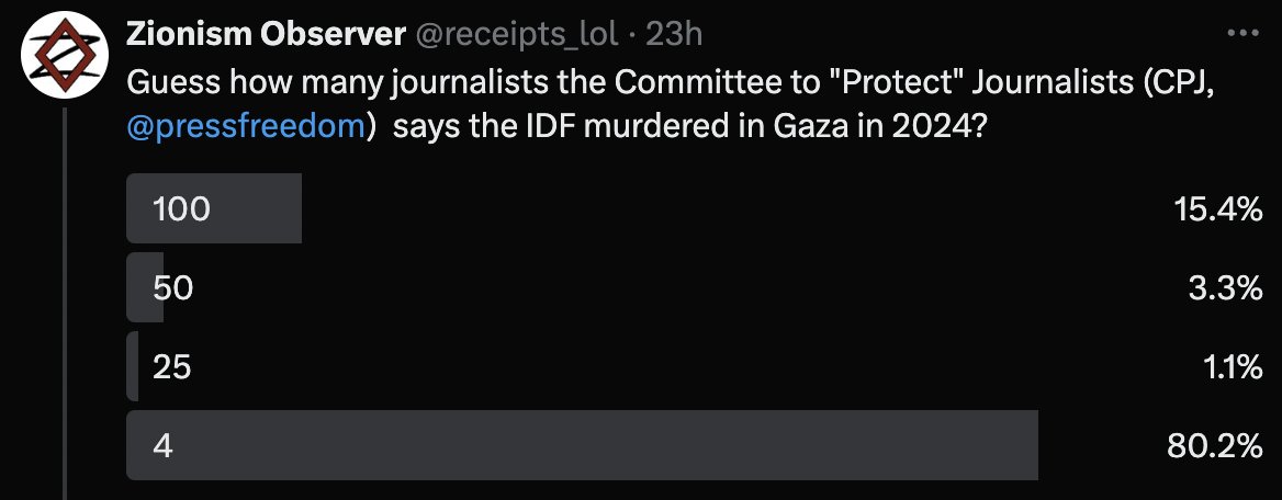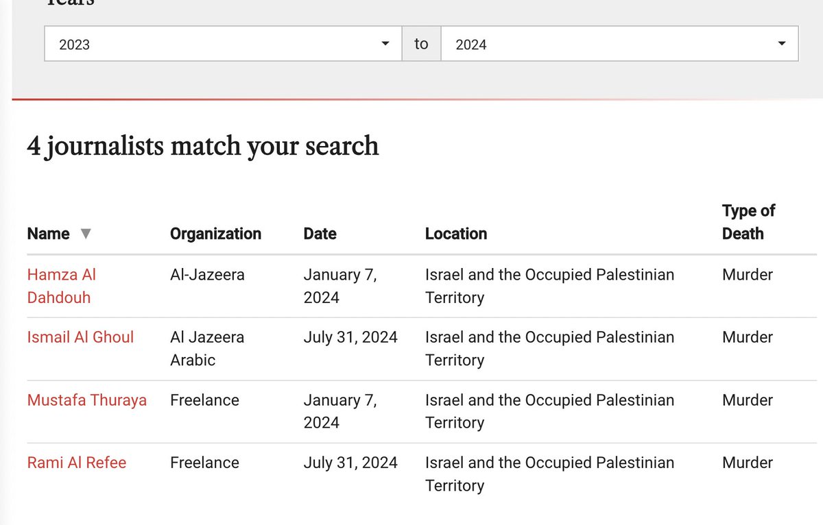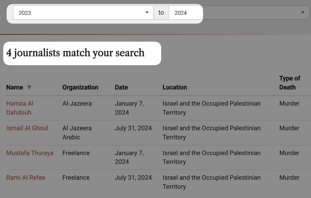 @pressfreedom CPJ is again publishing a wall of text to make it look like they are holding Israel responsible, but that is still just to distract you from the coverup (only 4 murders of journalists in Gaza).