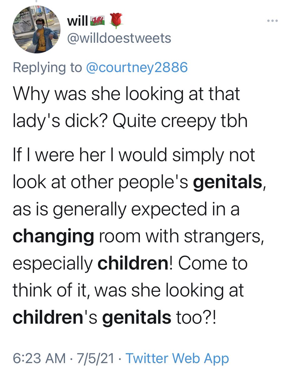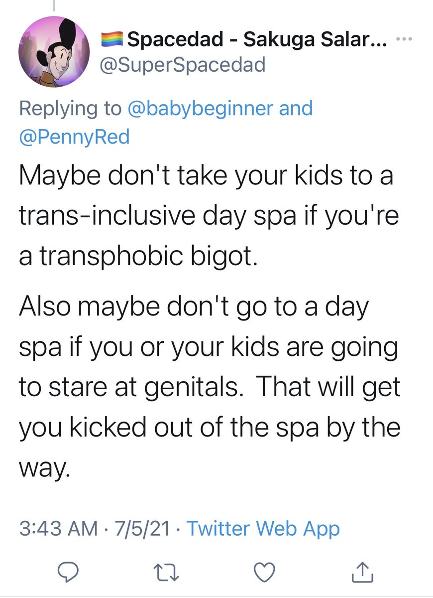 This is a thread on the responses to the Wi Spa incident. It shows how vicious people were in responding to anyone who objected to a man taking his clothes off and entering a women’s section of a spa where a nine year old was present. 1/