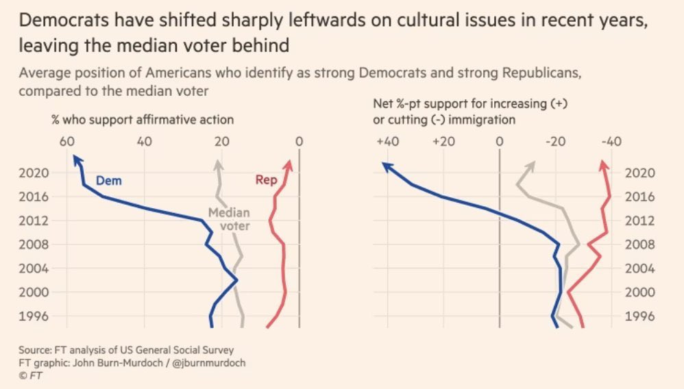 Over the last decade, Democrats & the media said that those of us who opposed DEI, racial quotas, and open borders had gone “far right.” We hadn’t. Rather, Democrats and the media had gone far left. We are only now emerging from 10+ years of extreme, psychopathic gaslighting.