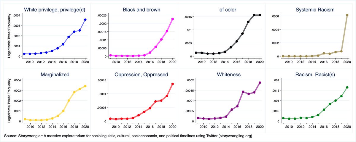 Part of what makes this @ZachG932 graph so persuasive is the data matches the reality experienced by many of us, namely that the big three newspapers in order of obnoxious racial Wokeness is @washingtonpost @nytimes and @WSJ