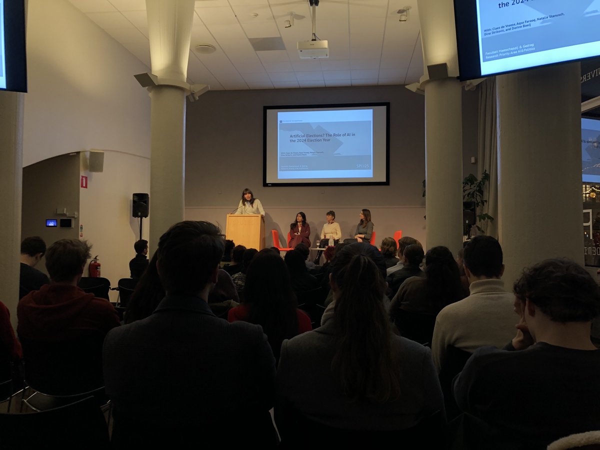 Eerst Aqsa Farooq, die dus bij communicatiewetenschap werkt en de presentatie van De Vreese begint te prijzen. uva.nl/en/profile/f/a…