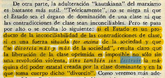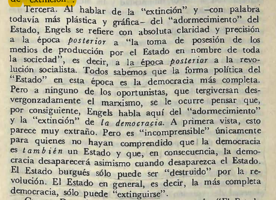 En 1917, en vísperas de Octubre, cuando la conquista el Poder se planteaba con imperiosa necesidad y denunciando el socialchovinismo recalcitrante en la ahora decaída Socialdemocracia Internacional, Lenin escribe “El Estado y la Revolución”, donde insiste en un punto clave: