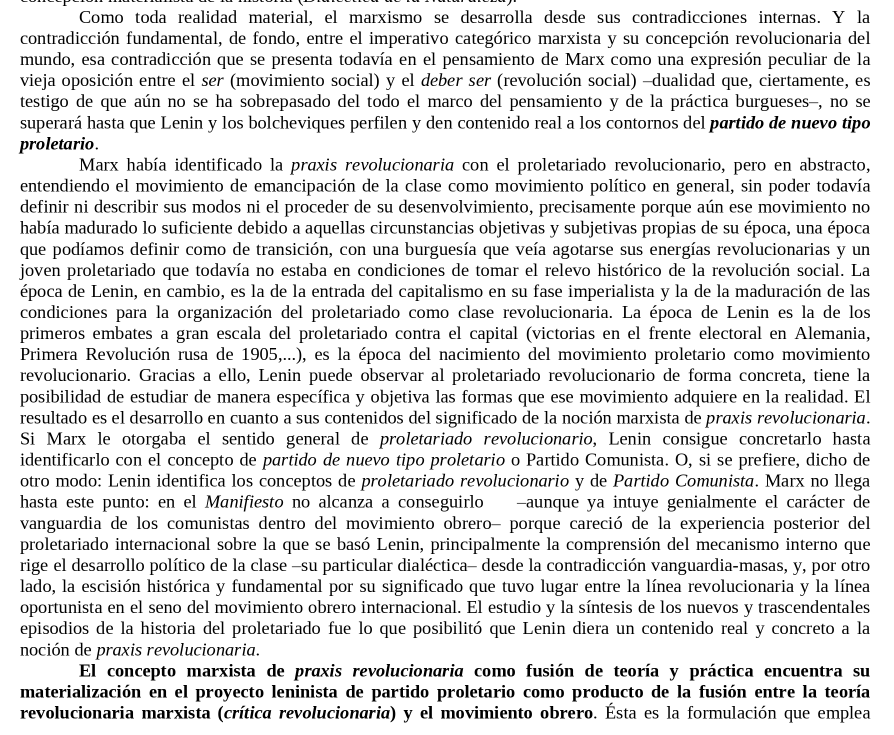 determinó de forma no insignificante a éste en sus prolegómenos (Marx, Engels, Lenin eran burgueses), pero con la materialización del PC, se vuelve imposible abanderar el progreso sin someterse al intelectual colectivo que es el PC. (20/25)