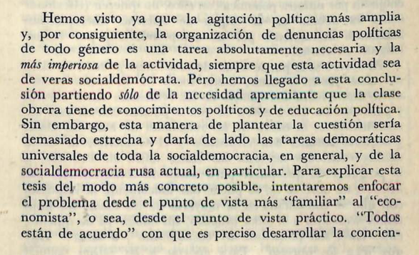 Lenin establece la inseparabilidad del trabajo teórico del político, que ambos pertenecen a un organismo social novedozo, el PC, que se articula en torno a las tareas del comunismo, y desde su resolución elevando paulatinamente a más amplios dominios de las masas (18/25)