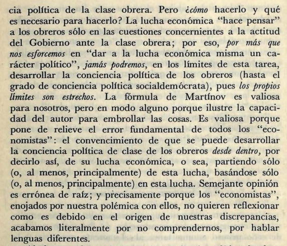Es aquí donde Lenin da su mayor aporte. Estableciendo al Partido de Nuevo Tipo como forma que debe de adoptar el proletariado revolucionario llevando a cabo su praxis revolucionaria, su proceso autoconsciente de autoemancipación: (16/25)