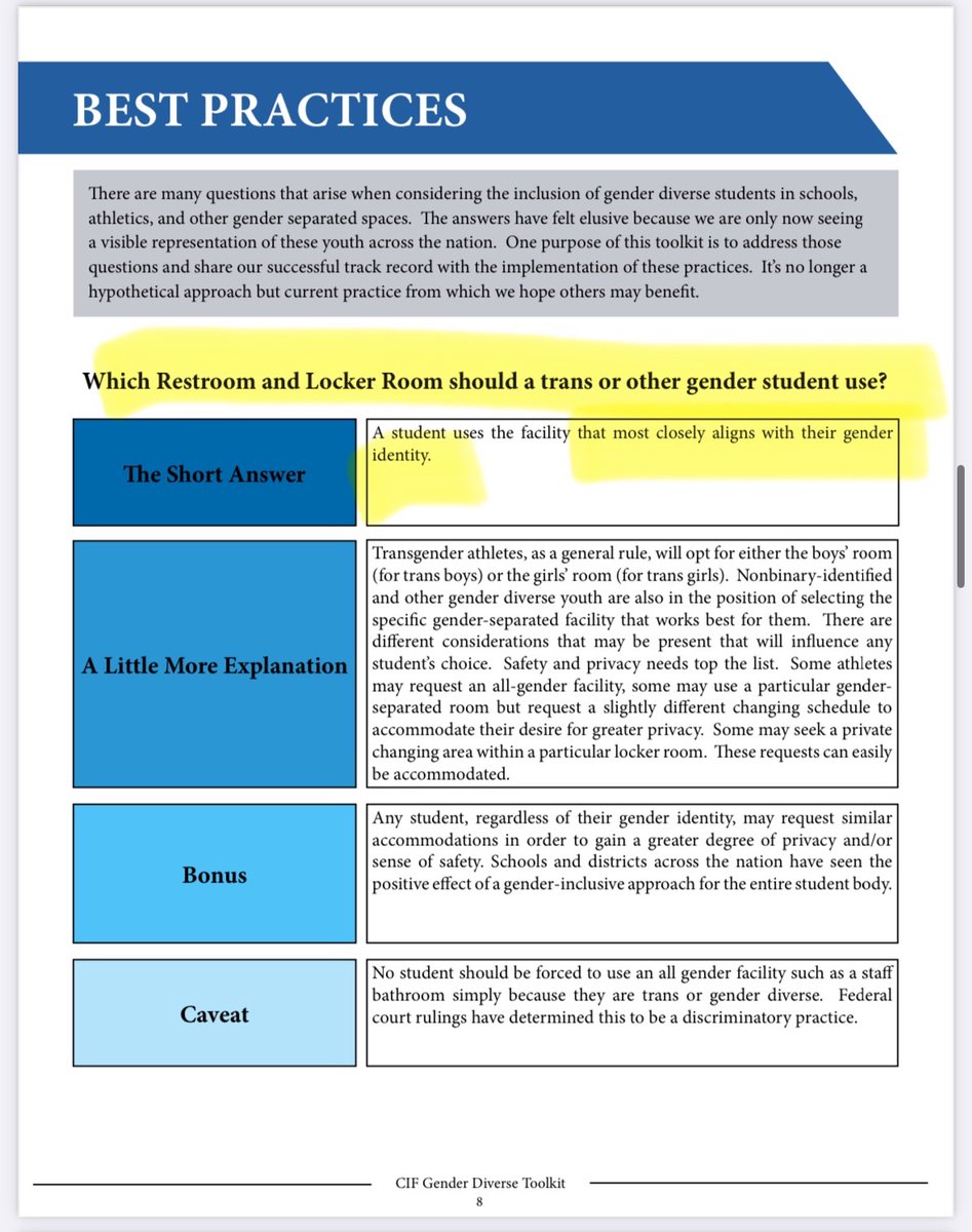 Parents please review CIF State Gender Inclusivity Toolkit for the policies that impact your daughter.