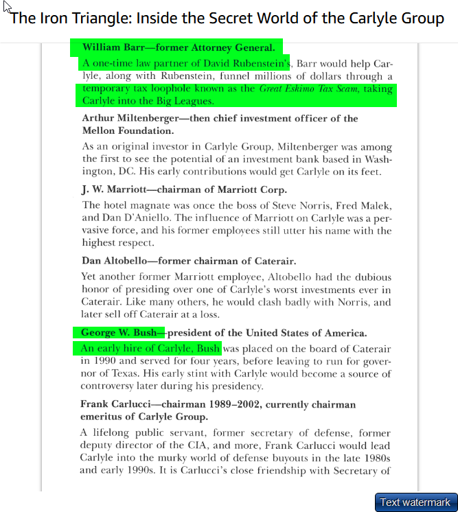 2) Bill Barr & David Rubenstein=Carlyle Group/Tax Schemes. 1982 Barr left private practice for...The White House.