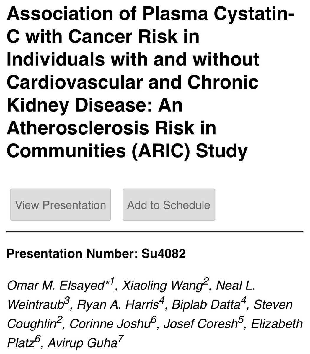 @AHAScience @OelsayedMD @JAHA_AHA @AmericanHeartJ @ICOSociety @DocHariKris @NainPriyanshu @DrTochiOkwuosa @khurramn1 Excellent work by @OelsayedMD using the @nih_nhlbi #ARIC Association of Plasma Cystatin-C with Cancer Risk in Individuals with and without Cardiovascular and Chronic Kidney Disease #cardioonc @JoeCoresh #SFRN @AHAScience
