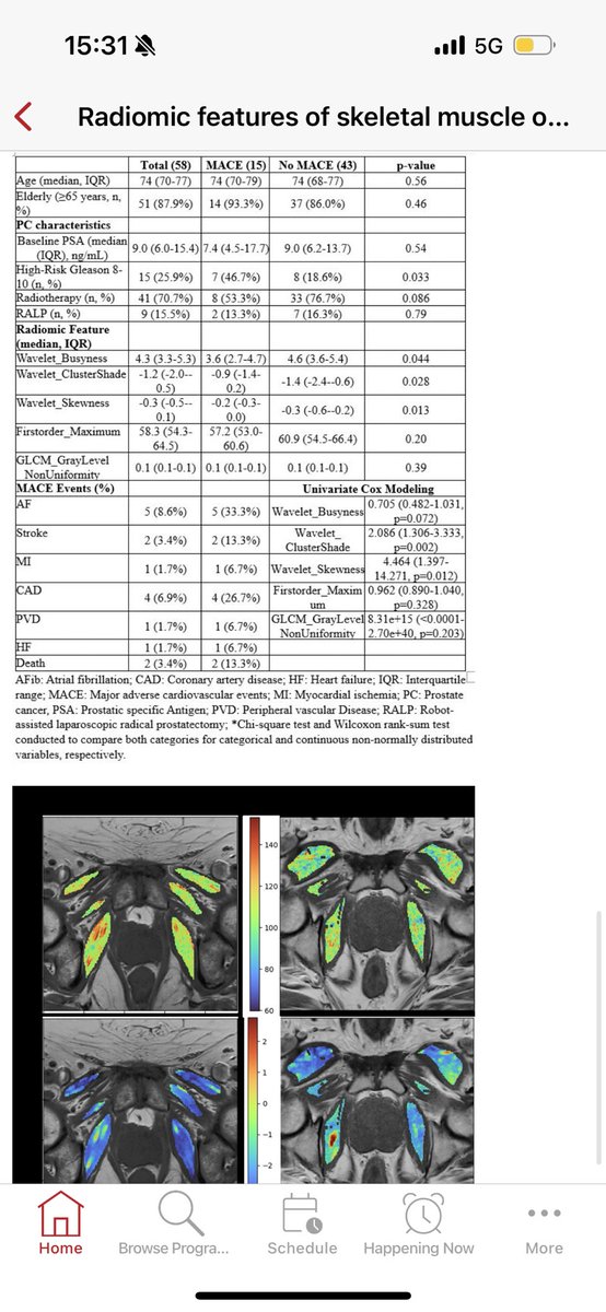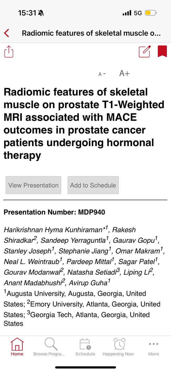 Finally ending the day with moderated poster by @DocHariKris who is presenting work we did with @anantm @RakeSHiradkar from @CoulterBME @EmoryAIHumanity: Radiomic features of skeletal muscle on prostate T1-Weighted MRI associated with MACE outcomes in prostate cancer patients undergoing hormonal therapy @sagarapatel @GACancerCenter