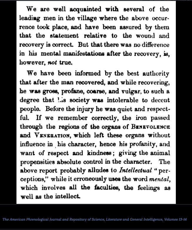 The rod destroyed a chunk of his brain’s frontal lobe.