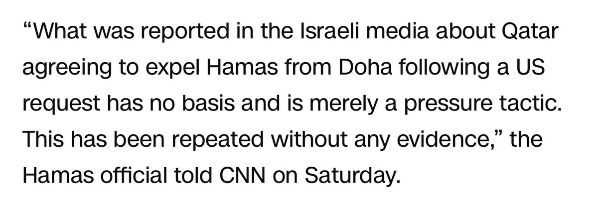 5/ Later that day, Qatar’s foreign ministry issued a pointed rebuke, rejecting the claim that they had ordered Hamas’s office shut as “inaccurate,” and accusing Israel of “blackmailing” and “manipulating” the situation to “continue the war for narrow political gain.”