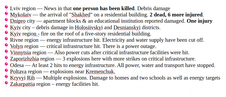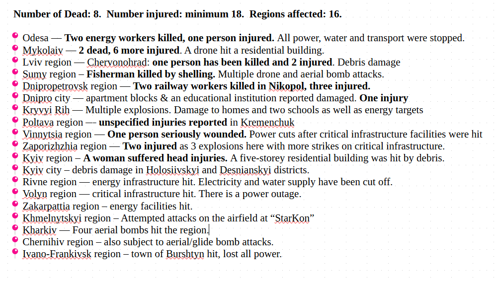 What an awful day. 16 regions attacked. 19 killed in #Russia's attacks and over 70 injured.