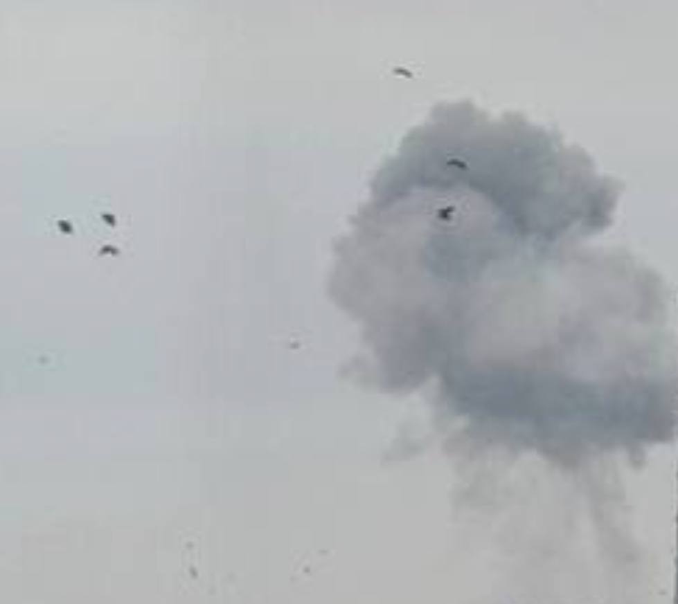 Tentatively, I report, aerial bombs may have been shot down by air defence.
