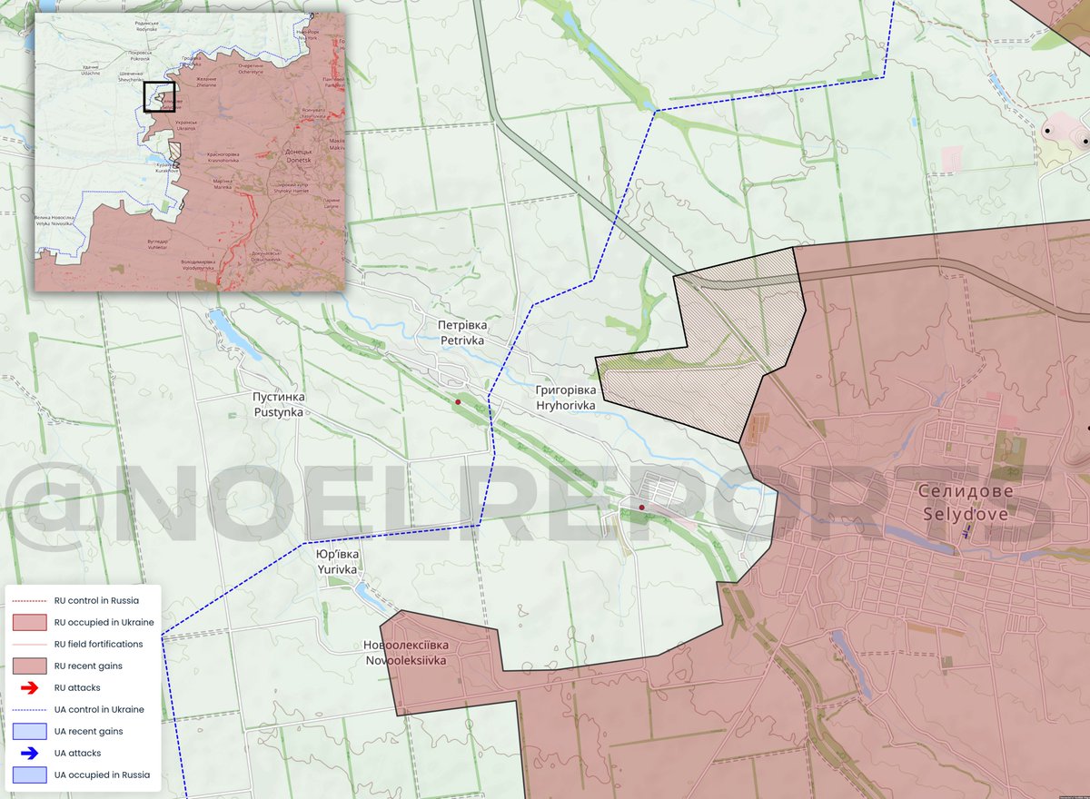 West of Selydove, Russian forces managed to advance slightly into Hryhorivka, geolocated footage confirms. After making solid initial gains, the pace in this exact direction seems to have slowed down a bit as focus shifted to Kurakhove.