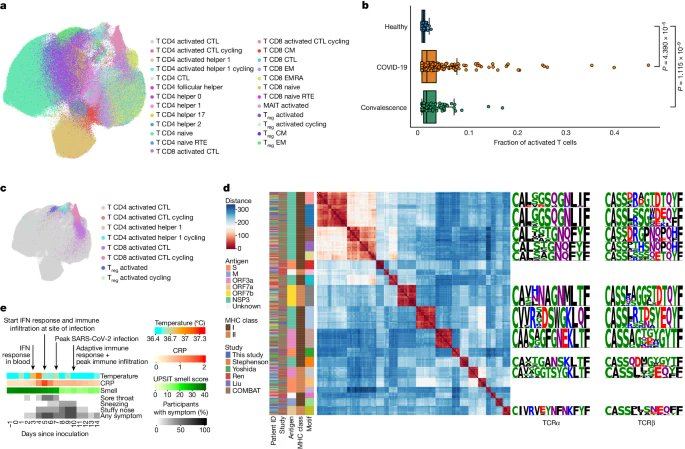 4) ▶️ Day 10: SARS-CoV-2 specific activated T cells expanded, with an unexpected prominent role for cytotoxic CD4+ T cells in the mucosal response.