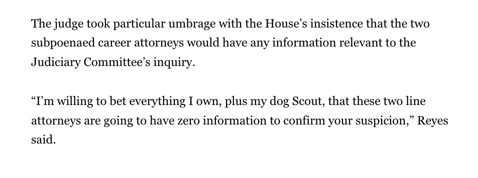 "Don't test me on this...I'm not bluffing," Judge Reyes, a Biden appointee warned the House and DOJ about her threat to force Garland/Jordan to attend court next week.