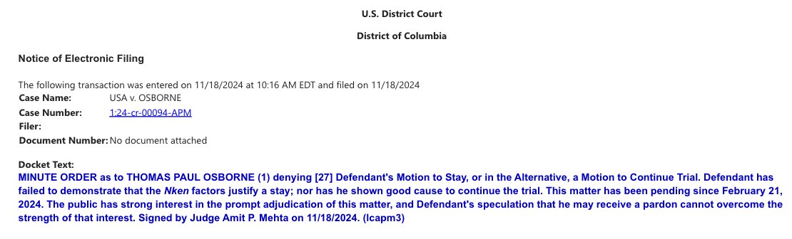 MORE: For now, DOJ appears poisted to press forward with new cases through Inauguration Day. It's prompting alarm from some Jan. 6 defendants who are urging Trump to call on the department to press pause *today.* politico.com/news/2024/11/0…