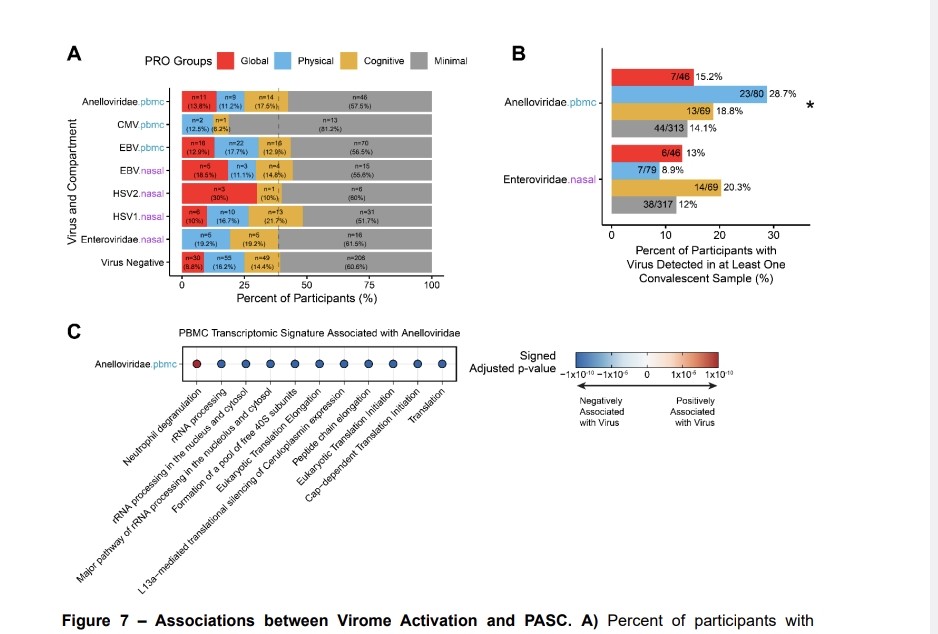 4) Importantly, one virus called Anelloviridae was associated with ongoing physical symptoms in COVID-19 survivors, such as fatigue and disability.