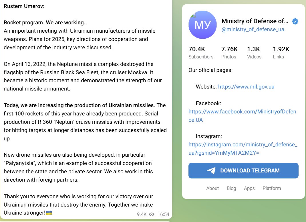 Defence Minister @rustem_umerov announced the missile has been improved too, and they've already made 100 this year alone.