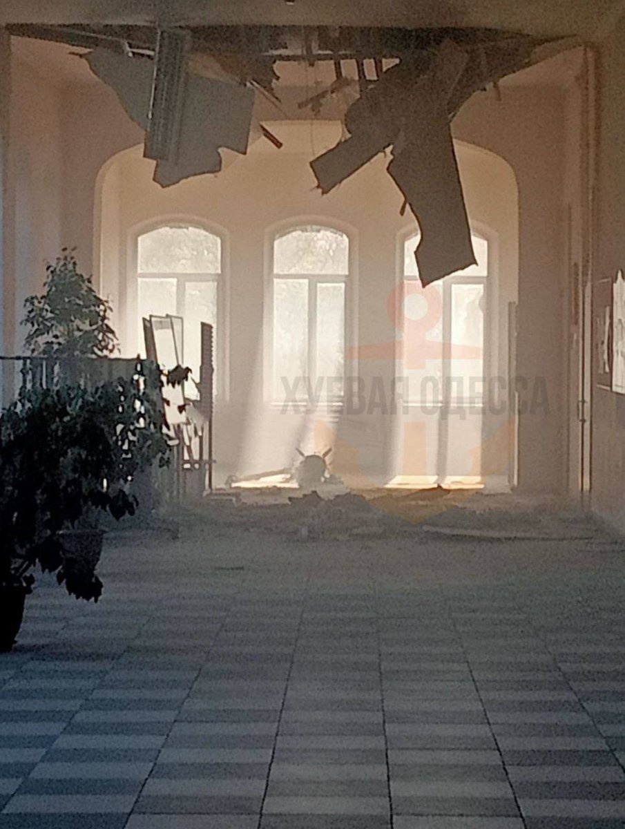 There's also the first picture from Odesa's Agricultural University which was hit by a falling missile, ripping through the roof.