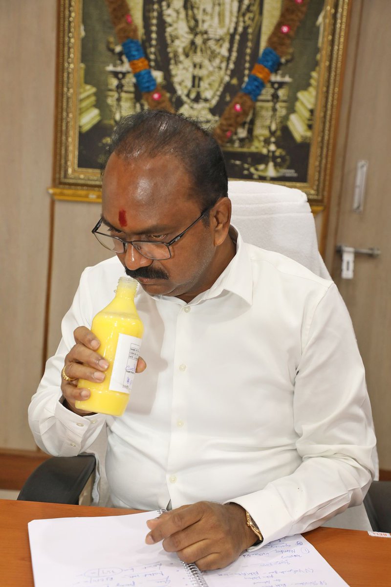 Asserting that TTD will ensure the sanctity of the highly sought-after Laddu Prasadam offered to Sri Venkateswara Swamy by using pure cow ghee, TTD Executive Officer Sri J. Syamala Rao emphasized that there will be no compromise on the quality of ghee used in making laddus.