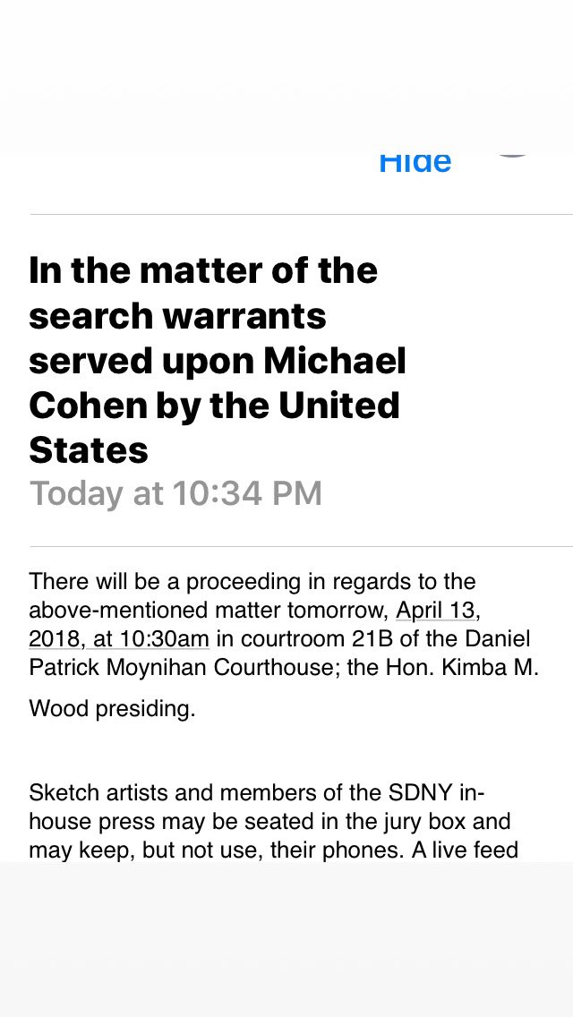 Flashback April 2018, I’m eating Scarr’s pizza, drunk on a weeknight from the 169 Bar/Metrograph combo date, check my work email and find out there will be hearing the next morning about the recent FBI raid of the sitting president’s personal lawyer’s office and hotel room.