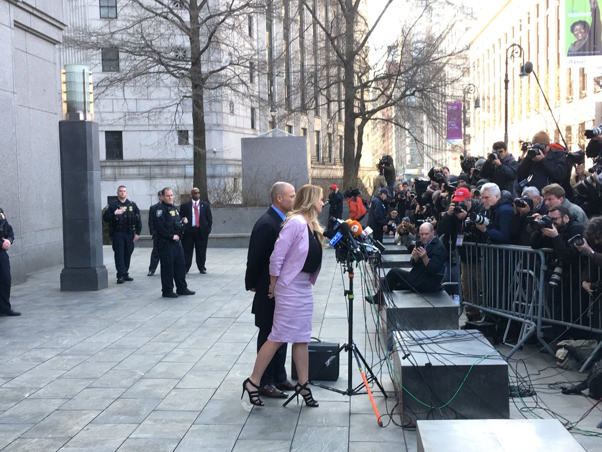 April 16, 2018: Stormy Daniels makes her first SDNY public appearance, with attorney Michael Avenatti; photographers knock over the metal crowd-control barrier, clamoring for shots of her. I’d never that happen here before.