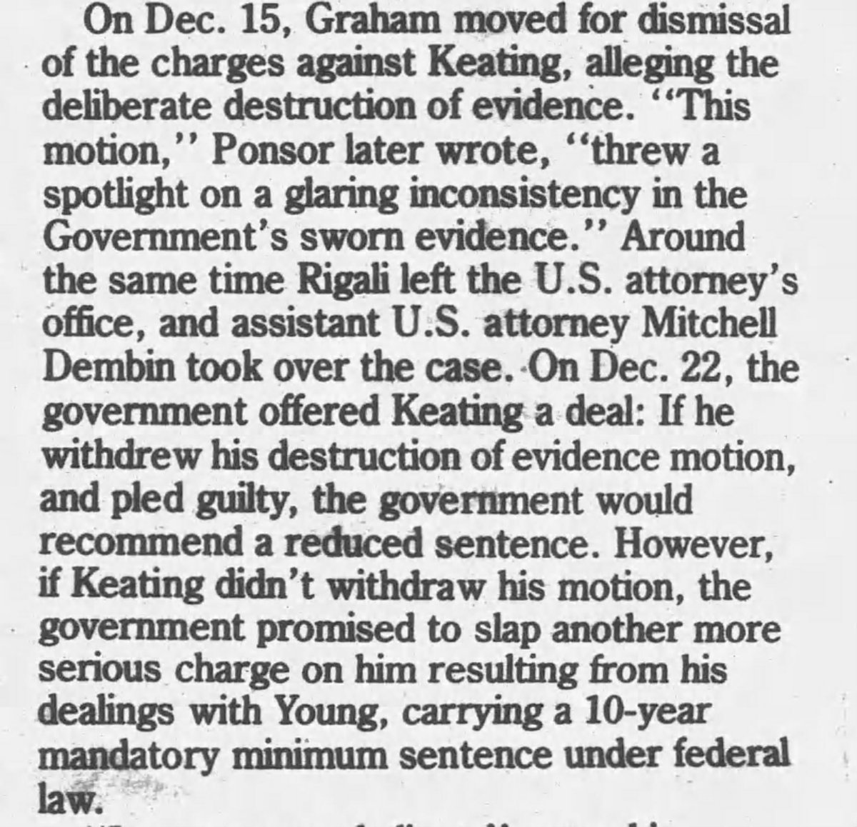 The defense moved for a dismissal due to the deliberate destruction of evidence. The government tried to strong arm the defendant into a plea deal using a new assistant US Attorney. The defendant held firm.