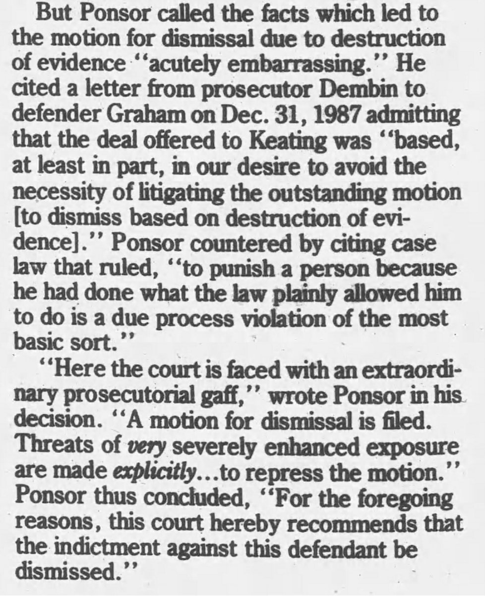 Keating’s defense attorney was alleging entrapment at the time and lo and behold the tapes were mysteriously missing 69 seconds of content after they had been maintained by Sean. Q-A-Sean even provided a theory on what happened by making up a reason for the gap in the tapes.