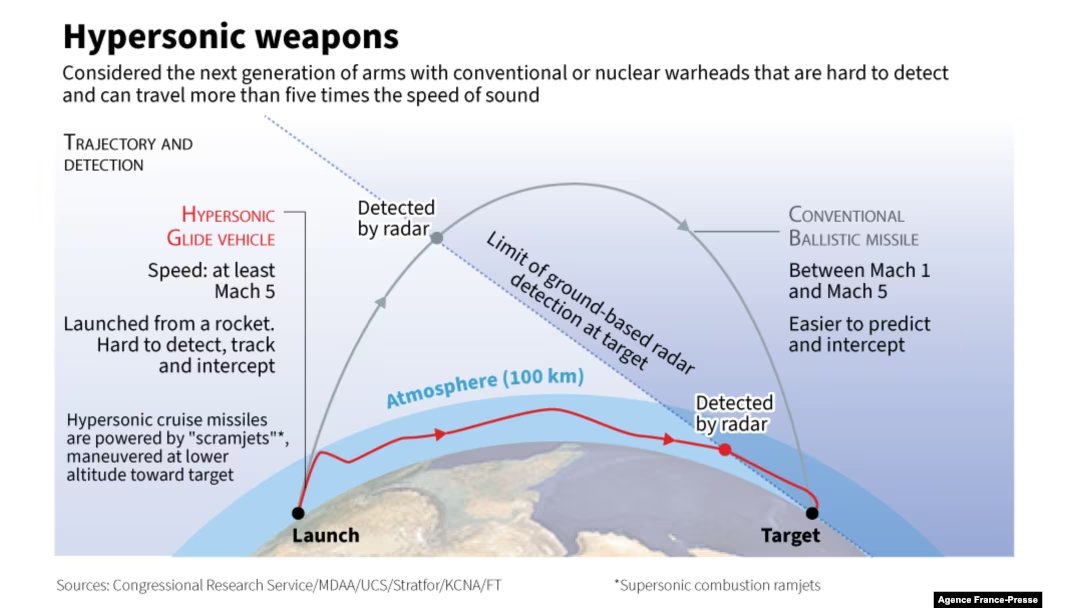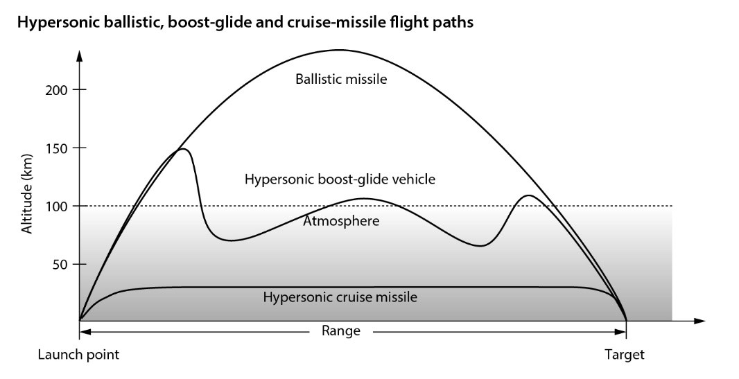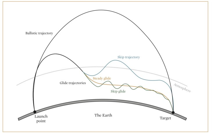 In this quasi-ballistic trajectory or Boost-glide trajectory, the missile skips across the top of the atmosphere like a stone on a flat lake.