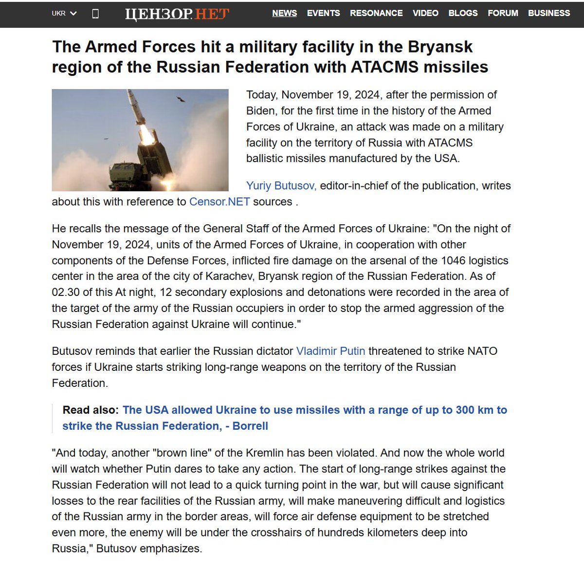More on #Ukraine's likely use of ATACMS in #Russia this morning.