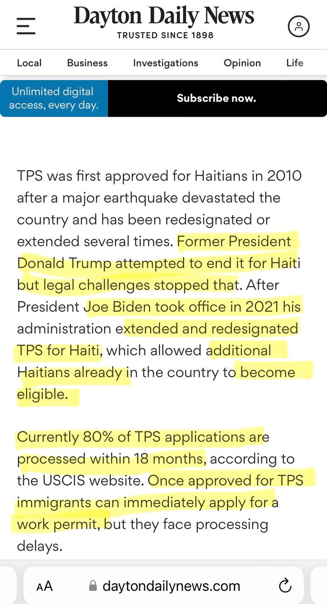 “TPS was first approved for Haitians in 2010 after a major earthquake devastated the country and has been redesignated or extended several times. Former President Donald Trump attempted to end it for Haiti but legal challenges stopped that. After President Joe Biden took office in 2021 his administration extended and redesignated TPS for Haiti, which allowed additional Haitians already in the country to become eligible.”