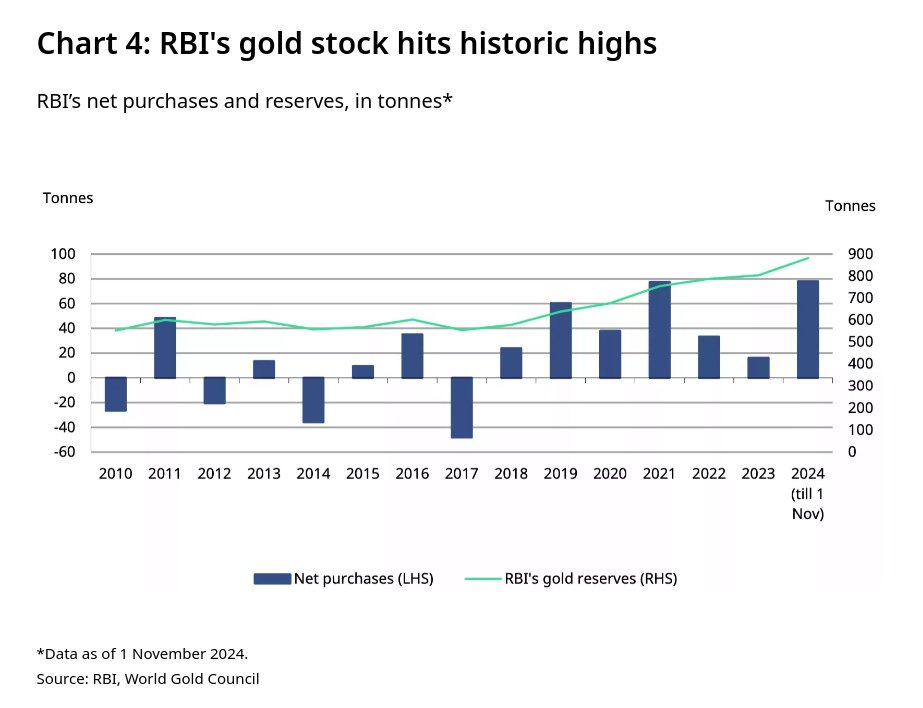 Take the RBI, for example—it has added a massive 78 tonnes to its reserves this year. To put that in perspective, it’s the second-highest level of gold buying in the RBI’s history.