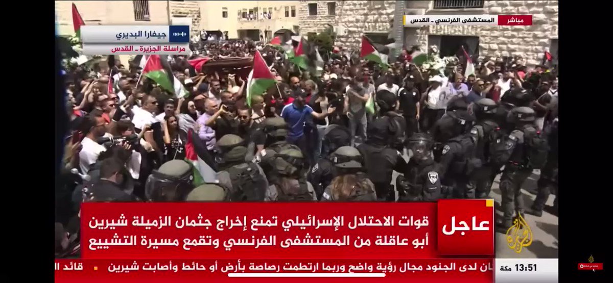 Horrible scenes as Israeli security forces beat the funeral procession for slain journalist Shireen Abu Akleh and the crowd momentarily lose control of her casket