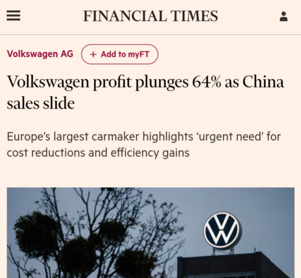 Widać go tym mocniej, że Berlin zależy od stanu branży motoryzacyjnej. Im Chińczycy lepiej radzą sobie w Europie, tym gospodarka 🇩🇪 mocniej cierpi.