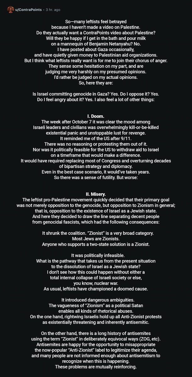 Contrapoints has decided that enough children have been shot by the IDF under the GHF plan in the past weeks to release his own post mass shooting trannyfesto.