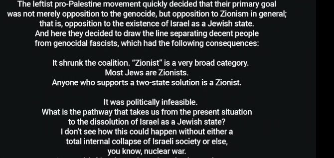 Rare instance of a leftoid “both sides guy” being a clearly closeted Zionist. Normally that’s a right wing type. Bruce Jenner arc coming?