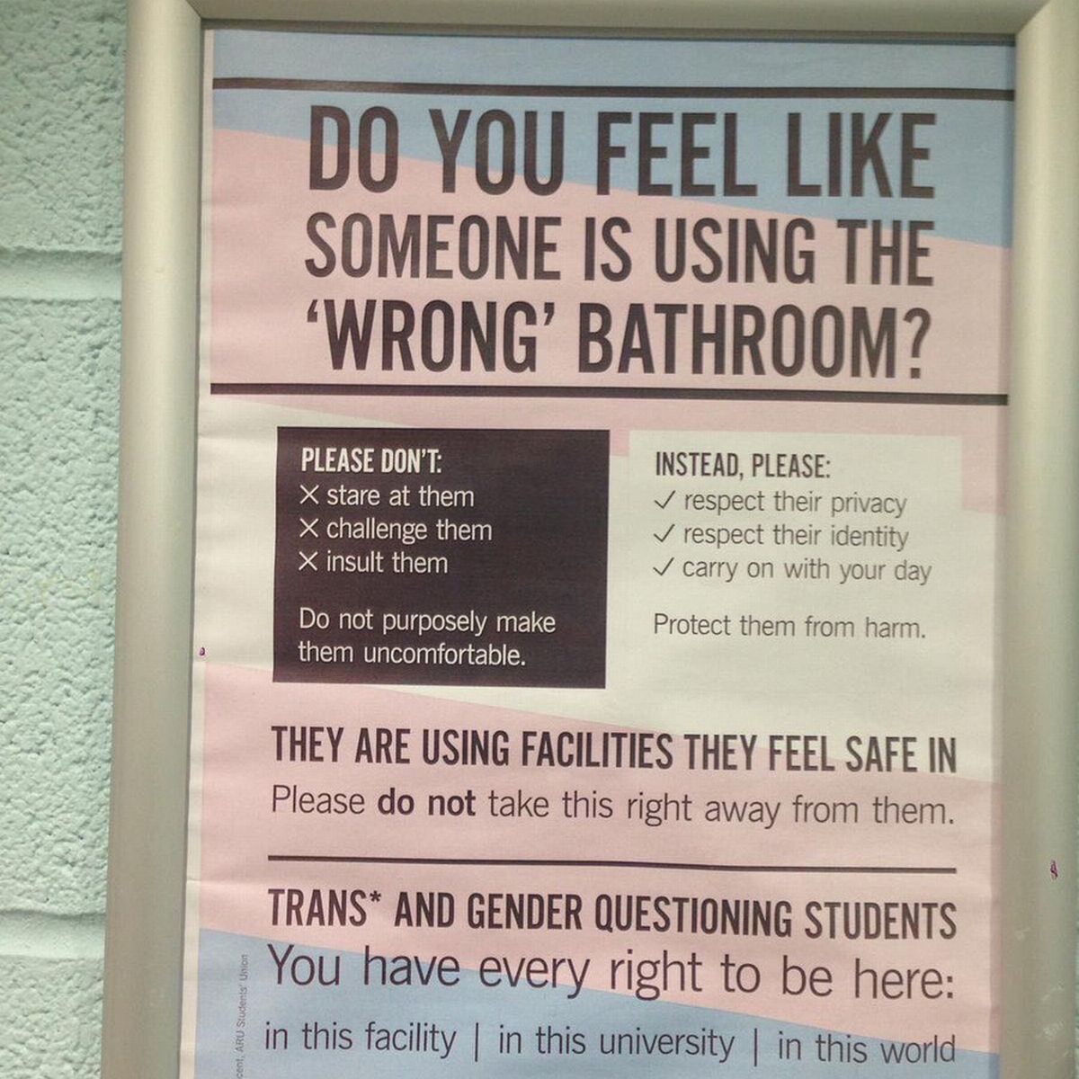 How are women supposed to be able to advocate for themselves when the trans activists are literally putting signs in the bathroom telling them to keep their mouths shut if they "feel uncomfortable"?