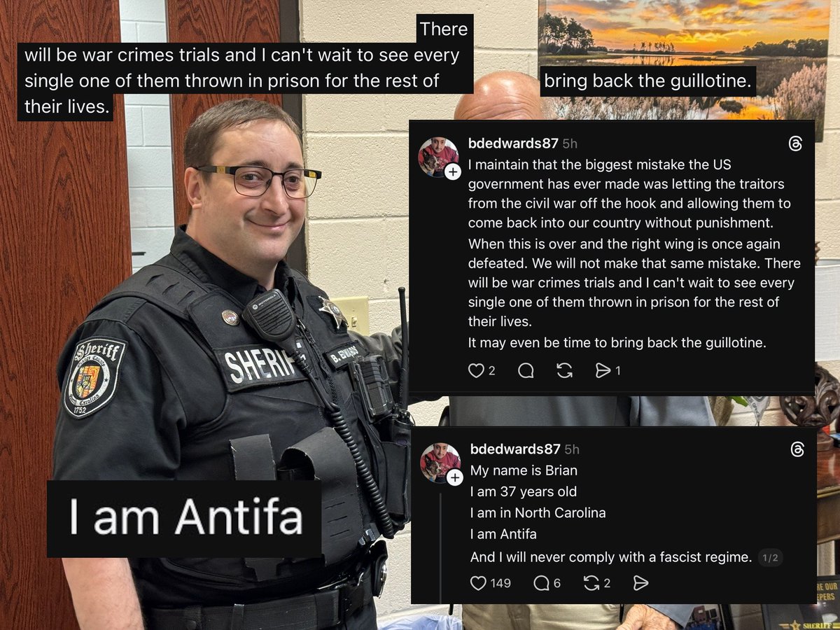 Detention Corporal Brian D. Edwards has been fired by the @OCNCSheriff for declaring "I am antifa" and calling for right-wingers to be imprisoned or executed
