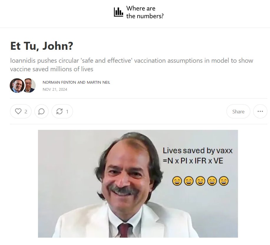 1. This post is about the new study by Ioannidis et al that claims millions of lives were saved by the covid vaxx.