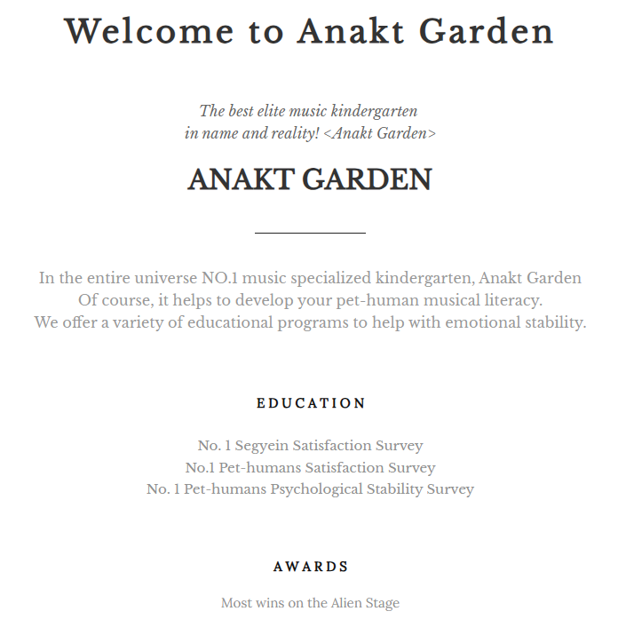 selected pet-humans are sent to anakt garden or similar institutions. like other elite schools, fees are steep, and admissions are highly competitive. once accepted, the children are shipped to anakt garden