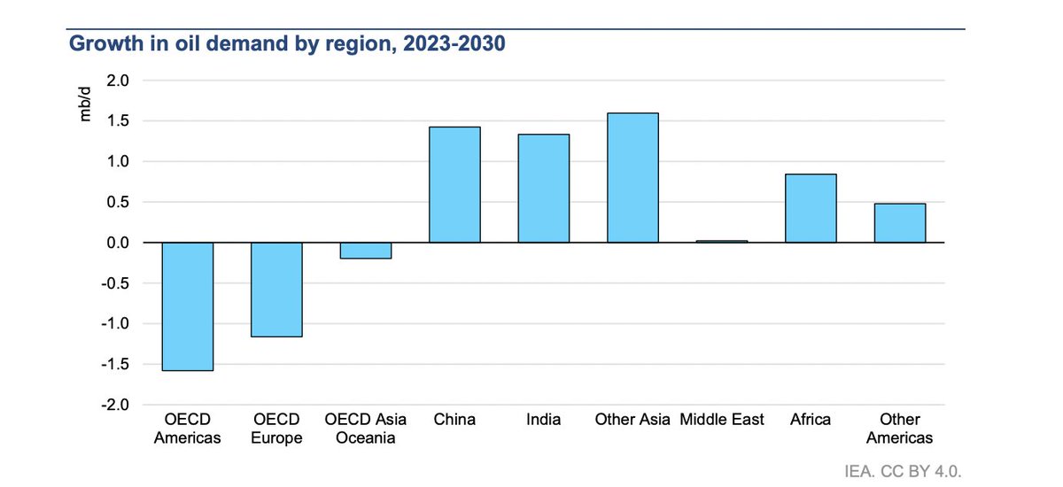 Europe has already said it wants to aggressively wean its economy off oil and gas imports. The impact of Russia's invasion is a lesson it won't soon forget. Here's the IEA's forecast for oil demand growth out to 2030.