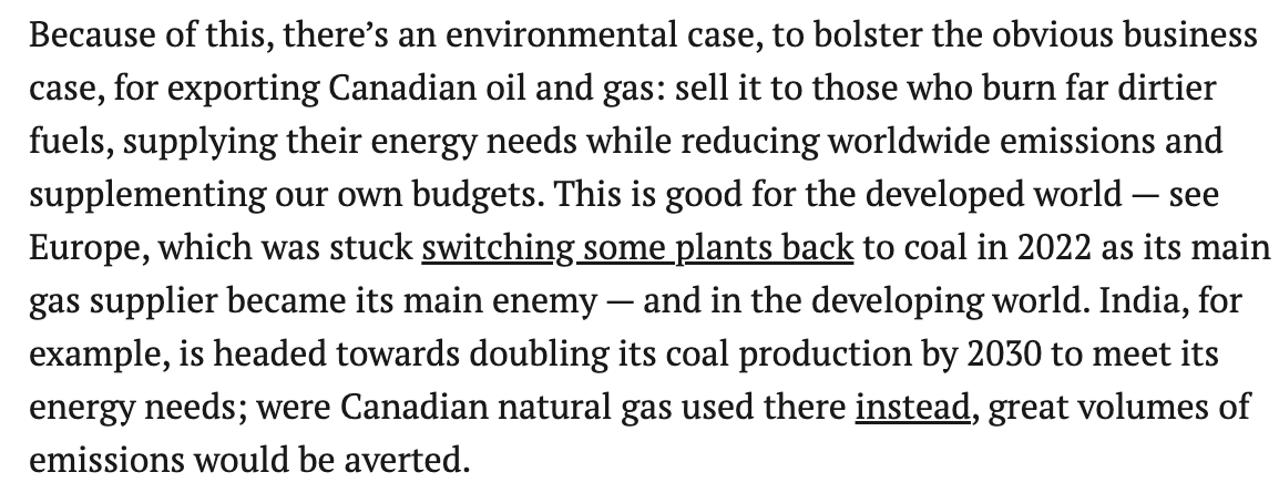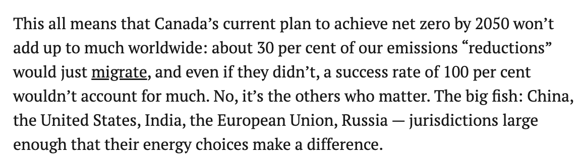 It also sidesteps a crucial question: what happens to demand for Canadian oil and gas if these other jurisdictions DO make different energy choices?