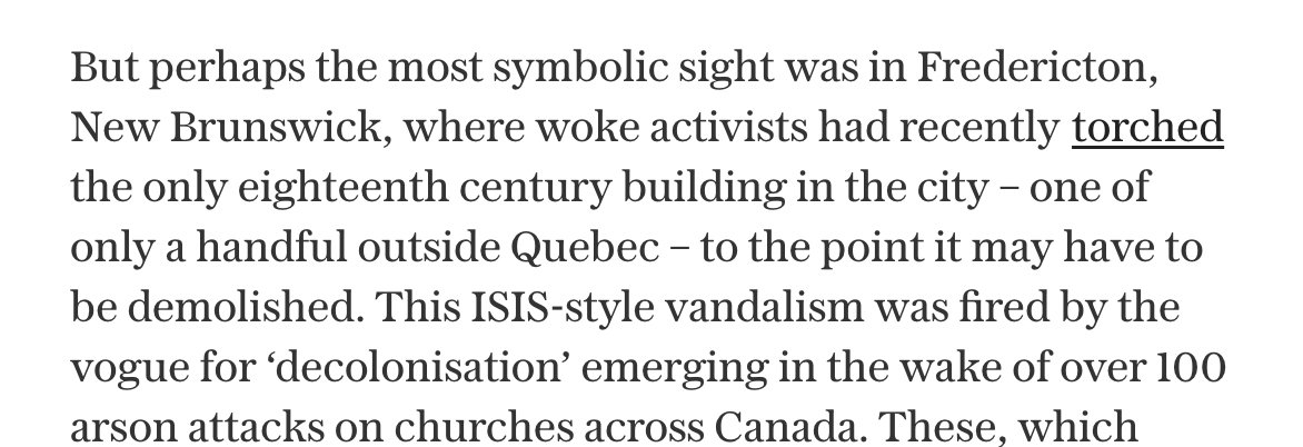 But trust me, it gets *way* weirder. He blames "woke activists" for torching a former military barracks in Fredericton, and ties it to the increase in church arson and burnings since the 2021 discovery of potential unmarked graves at a former residential school in Kamloops.