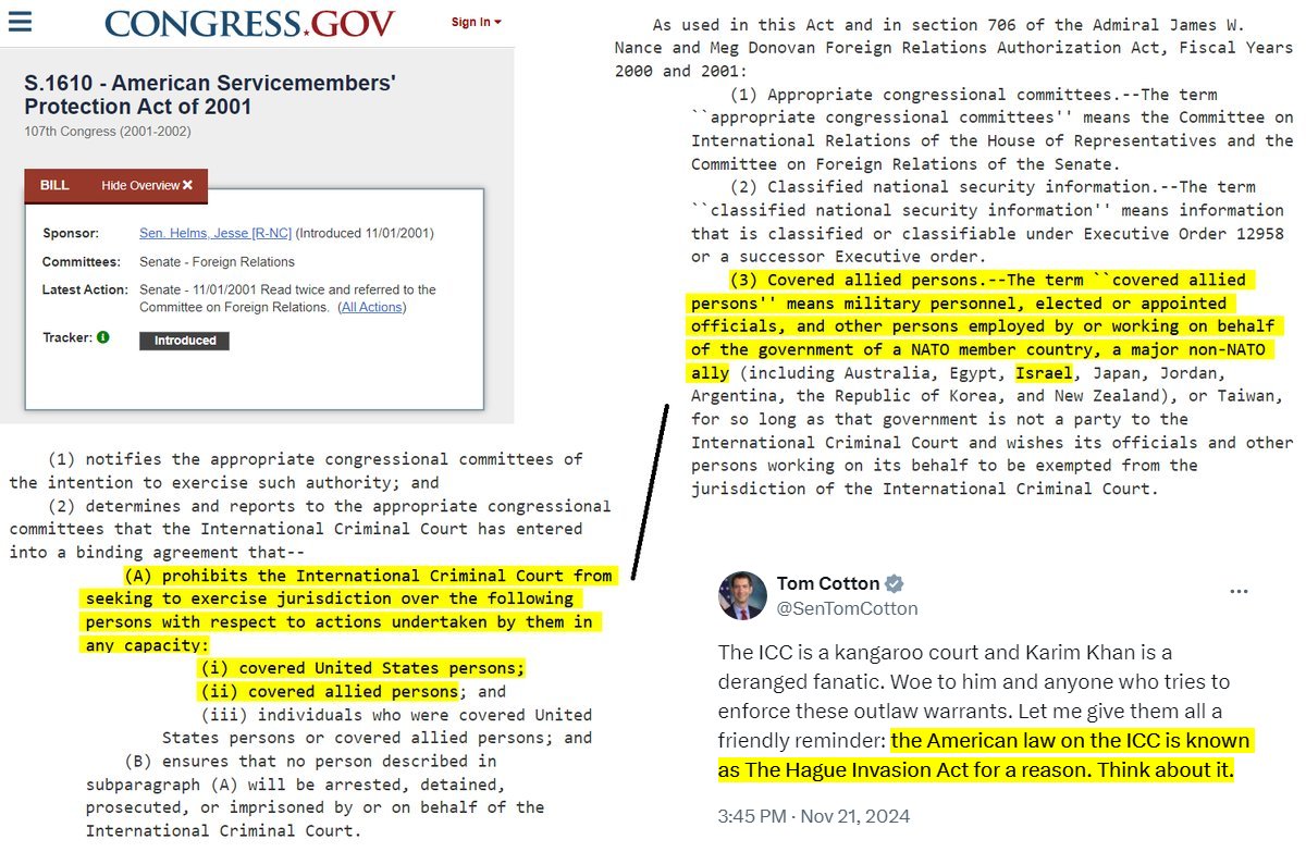 the Netherlands is in NATO. So the US signed into law that it will invade another NATO country and destroy an independent judicial institution if it ever dares investigate and prosecute its beloved genocidal Zionist war criminals. Why? Here's why:
