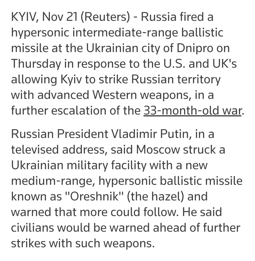 Britain has been at the forefront of the push to allow Ukraine to strike deep inside Russian territory with Western weapons. They finally got the permission, Ukraine did that, and got ICBMed. Your move, London and Kiev. Your move.